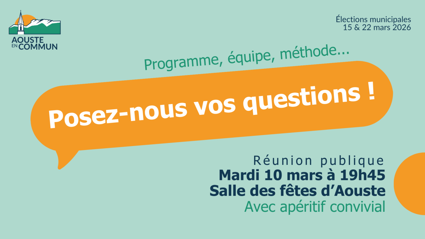 Chaque don est un soutien important. Donner c’est une manière simple et très concrète de soutenir notre liste Aouste en commun pour lui permettre d’accéder à la mairie et de réaliser les projets proposés dans notre programme.